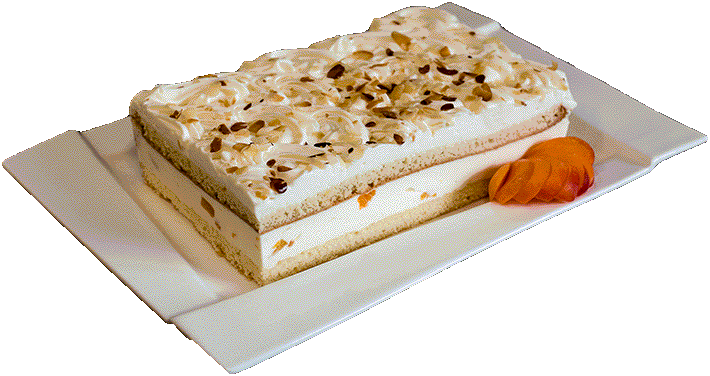 BIAŁA DAMA - Jasny biszkopt z kremem śmietankowym i kawałkami mandarynek.