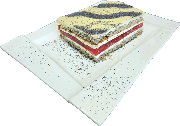 MAKOWA PANIENKA - biszkopt z makiem przekładany kremem śmietankowym i wiśniami w żelu