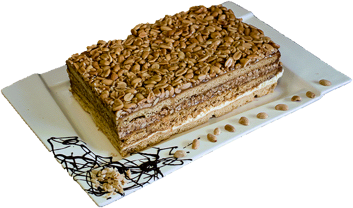 ORZECHOWIEC - Ciasto miodowe przełożone kremem i orzechami w miodzie.