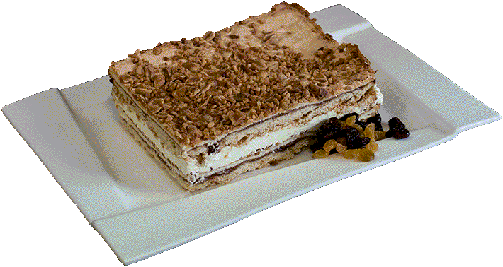 PANI WALEWSKA - Ciasto z bezą i orzechami, przekładane kremem śmietankowym.