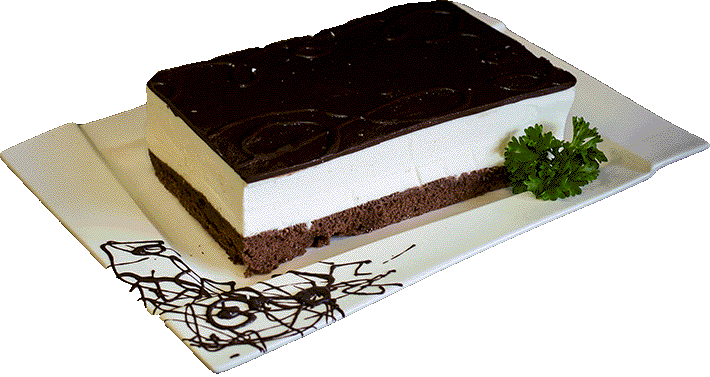 PTASIE MLECZKO - Ciemny biszkopt przełożony mleczną pianką oblany czekoladą.