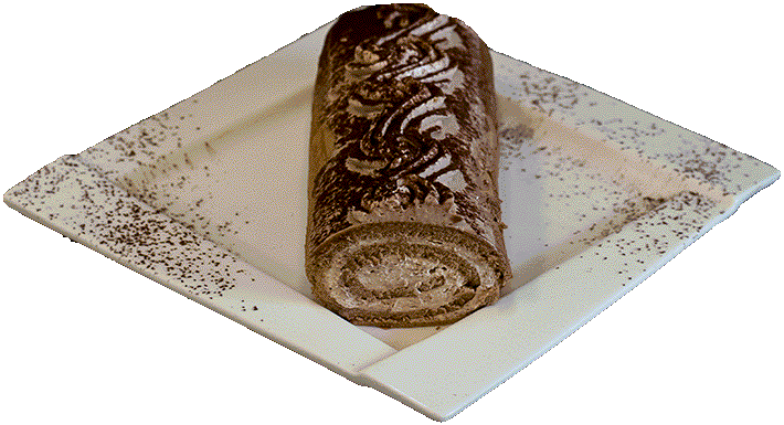 ROLADA TIRAMISU - Zrolowany ciemny biszkopt z nadzieniem tiramisu obsypany kakao.