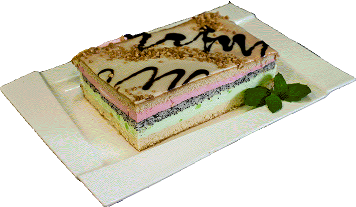 TULIPAN - Jasny biszkopt przełożony pianką agrestową, wkładem makowym oraz pianką truskawkową.